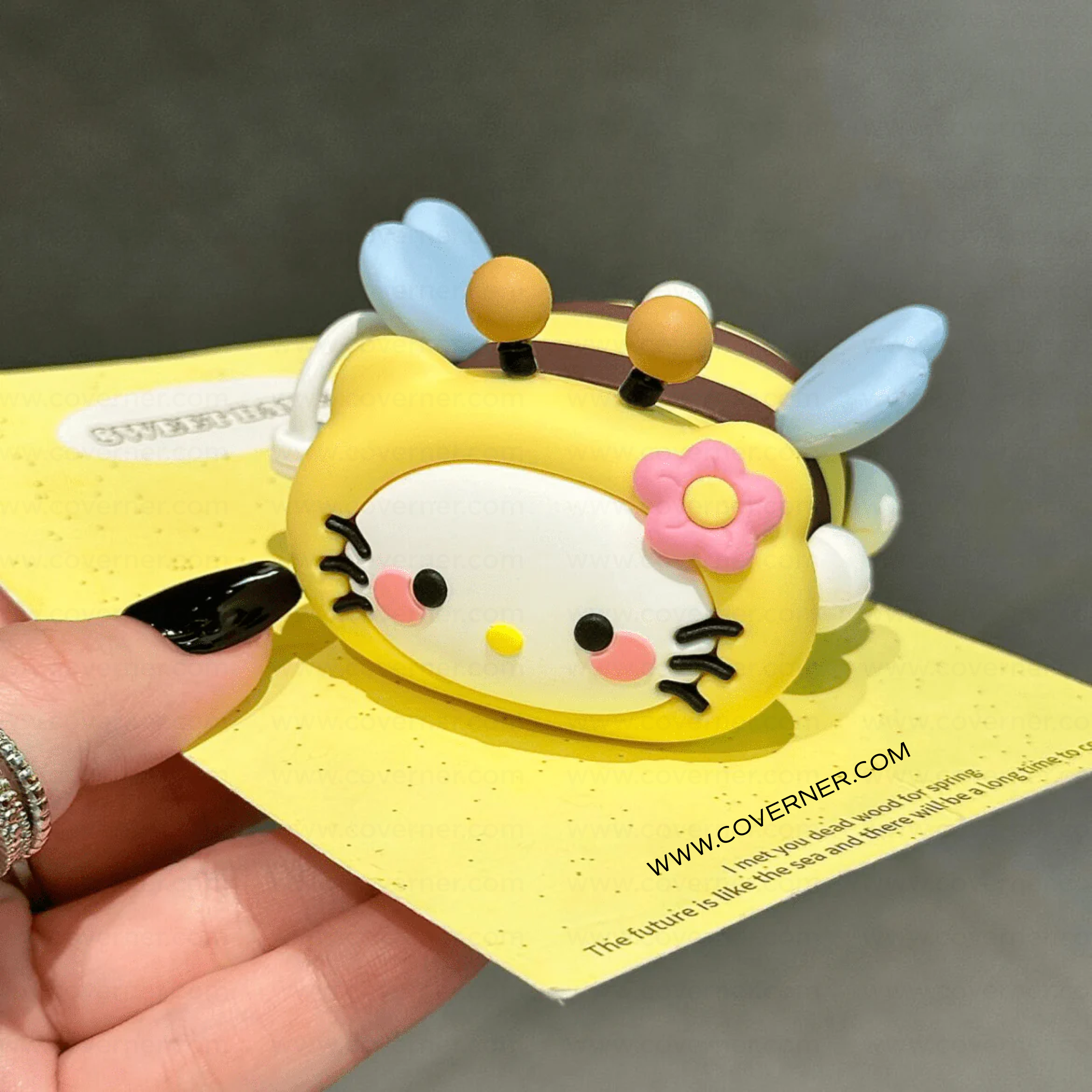 Turn your AirPods into the center of attention with our BeeBoo Kitty Bee Case – a playful mash-up of cartoon charm and real-world protection, only by Coverner India. Made from soft-touch silicone, this 3D case resists fingerprints, scratches, and drops while staying vibrant and cute over time.