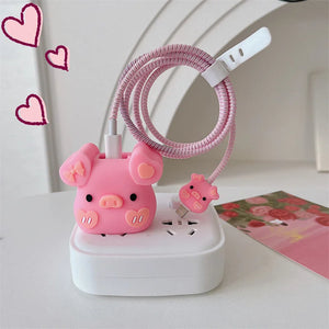 Iphone Charger Case Cover - Pink Piggy - 4 Piece Set