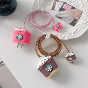 Iphone Charger Case Cover - Starbucks Cappuccino Lover - 4 Piece Set (With Wire Protector)