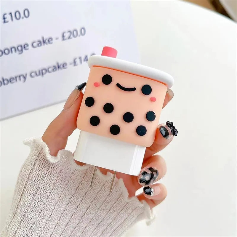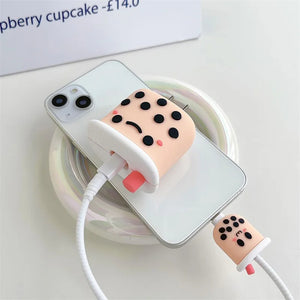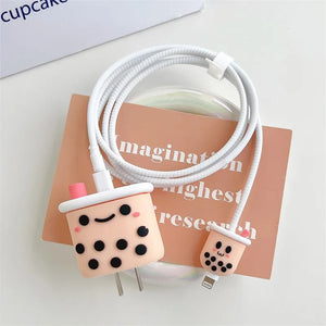 Iphone Charger Case Cover - Bubble Tea (Boba Tea) - 4 Piece Set (With Wire Protector)