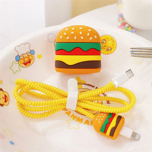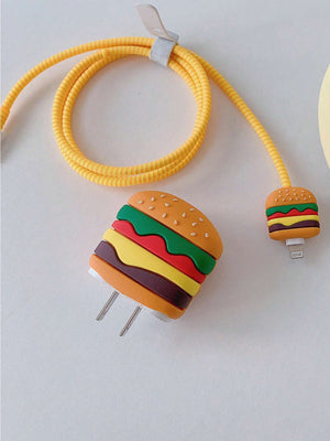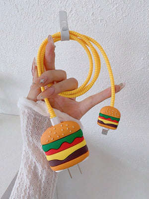 Iphone Charger Case Cover - Burger - 4 Piece Set (With Wire Protector)