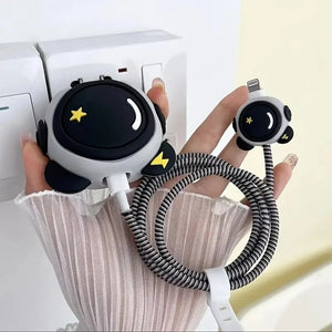 Iphone Charger Case Cover - Cute Astronaut - 4 Piece Set (With Wire Protector)