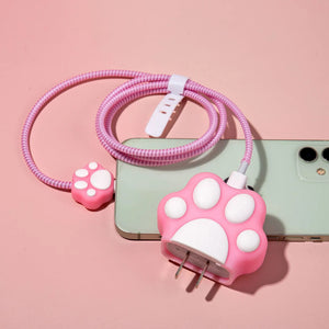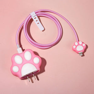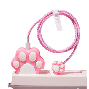 Iphone Charger Case Cover - Cute Paws - 4 Piece Set (With Wire Protector)