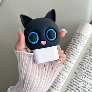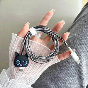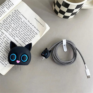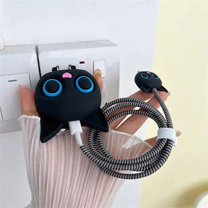Iphone Charger Case Cover - Kitty Black - 4 Piece Set (With Wire Protector)