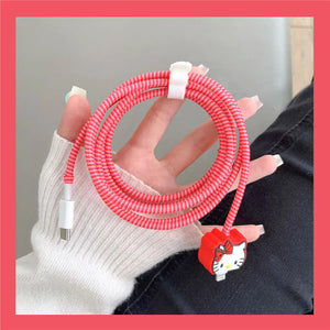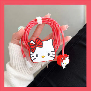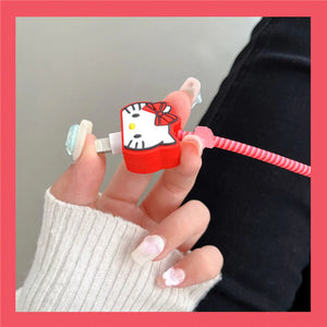 Iphone Charger Case Cover - Kitty Red - 4 Piece Set (With Wire Protector)