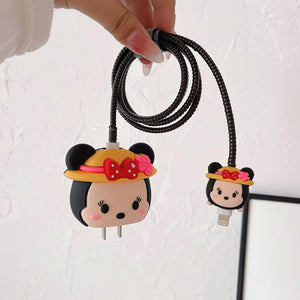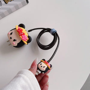 Iphone Charger Case Cover - Minnie Mouse Red Bow - 4 Piece Set (With Wire Protector)