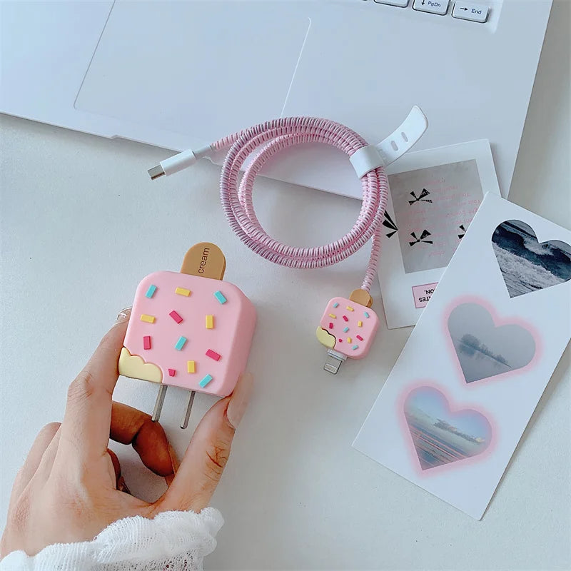 Iphone Charger Case Cover - Popsicles - 4 Piece Set (With Wire Protector)