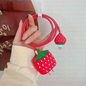 Iphone Charger Case Cover - Red Cherry - 4 Piece Set (With Wire Protector)