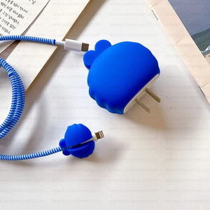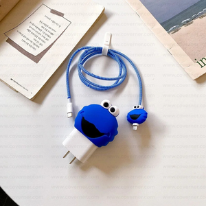Iphone Charger Case Cover - Baby Monster - Blue - 4 Piece Set (With Wire Protector)