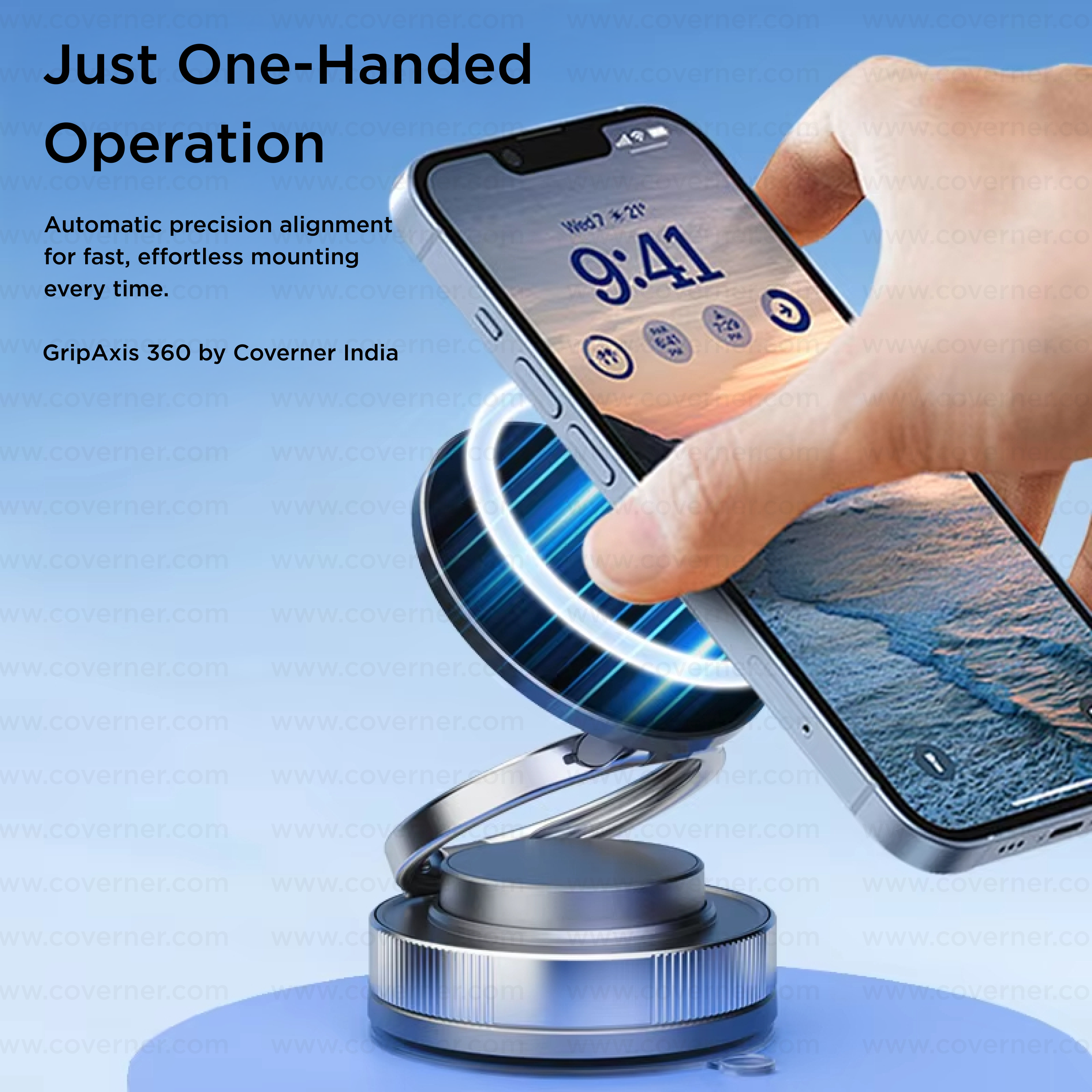 GripAxis 360 – 2025 Edition | Magnetic Vacuum Suction Phone Holder by Coverner India