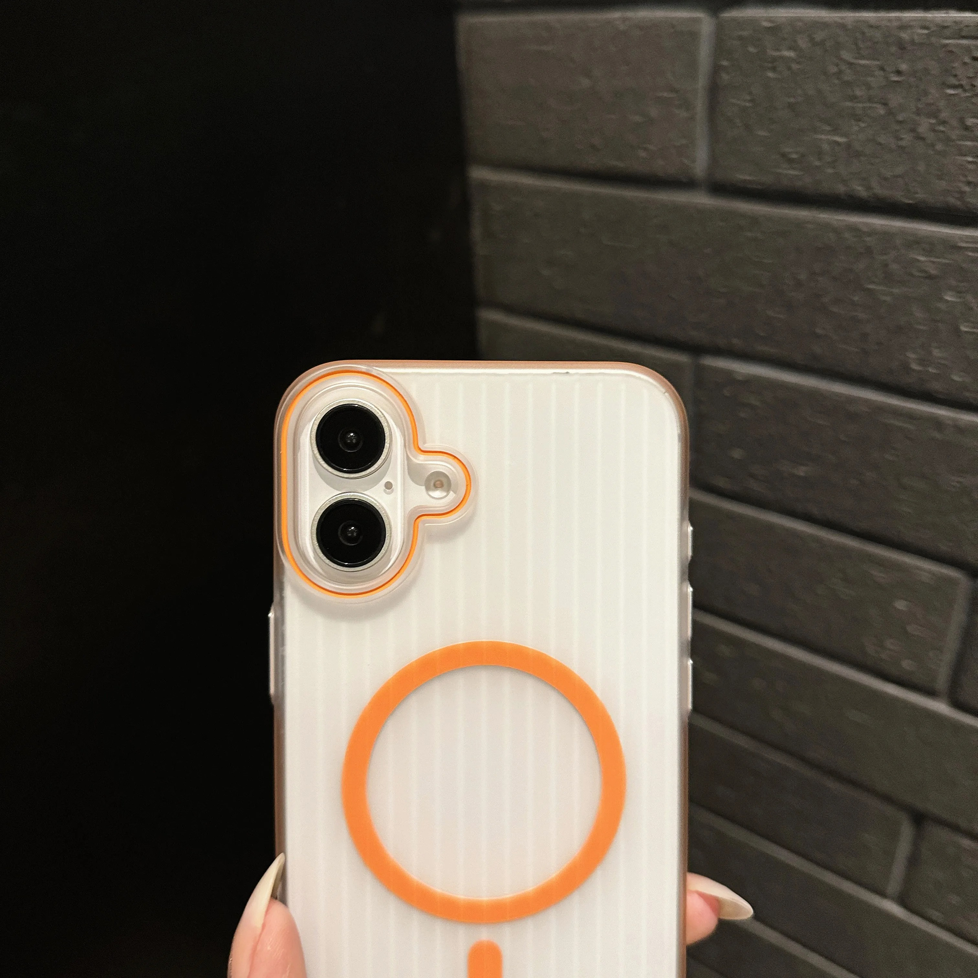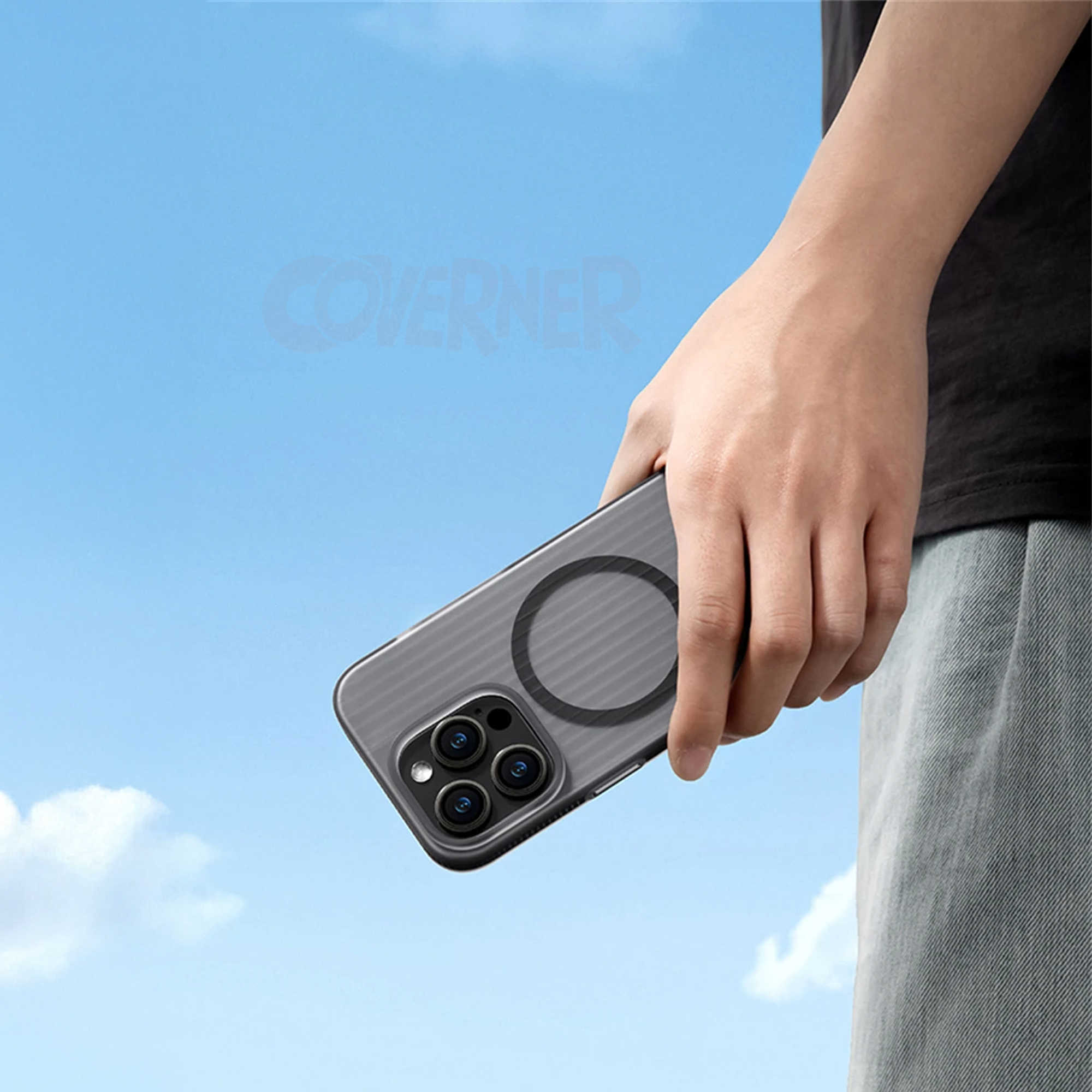 Made from premium polycarbonate (hard plastic), it features embossed stripe detailing for superior grip and visual appeal. The built-in MagSafe magnets ensure smooth wireless charging—no need to remove your case, just snap and charge effortlessly.