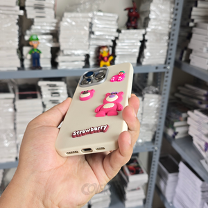 Strawberry Bear - Cream - Cartoon Charm Silicone Case for Iphone, Camera Protection | Coverner India