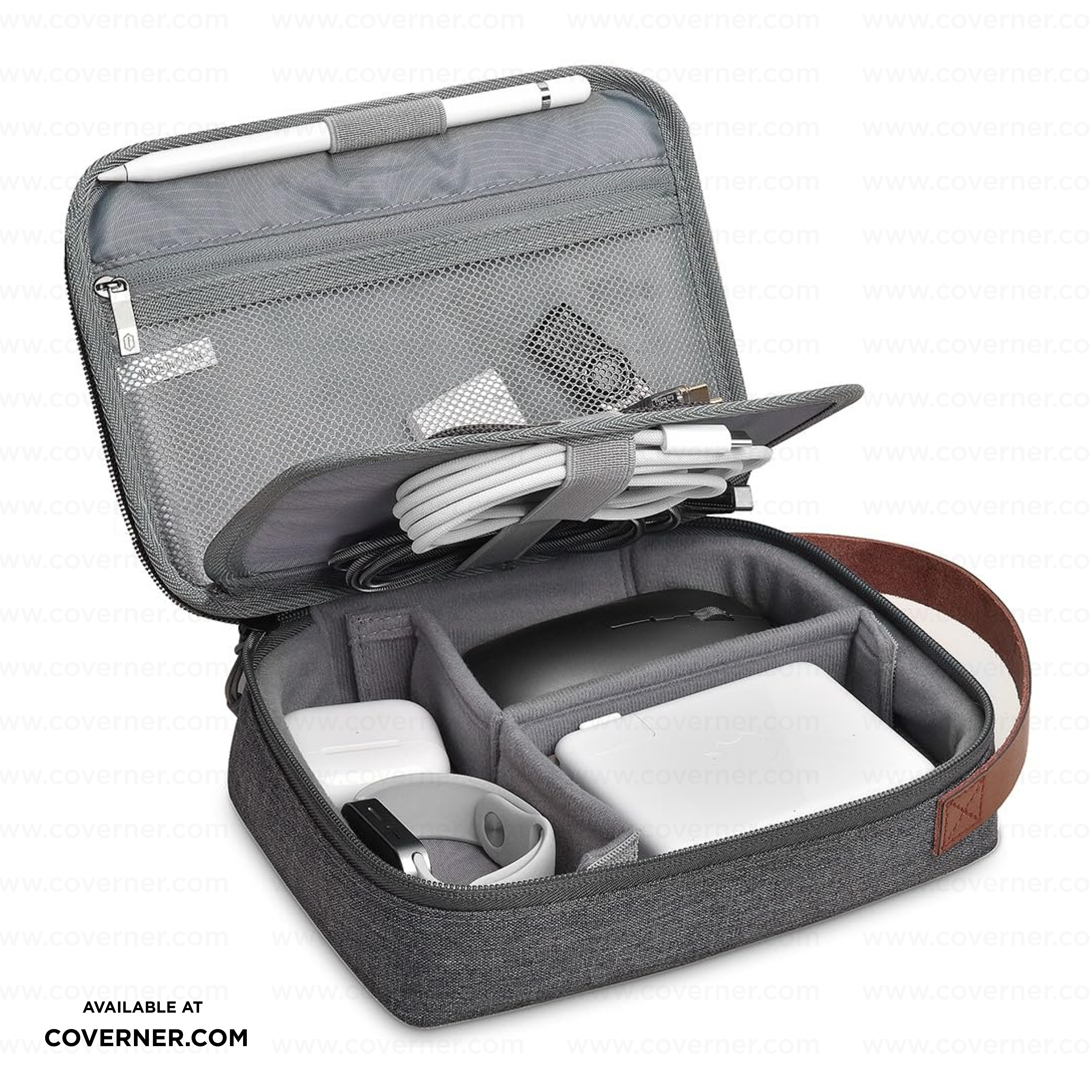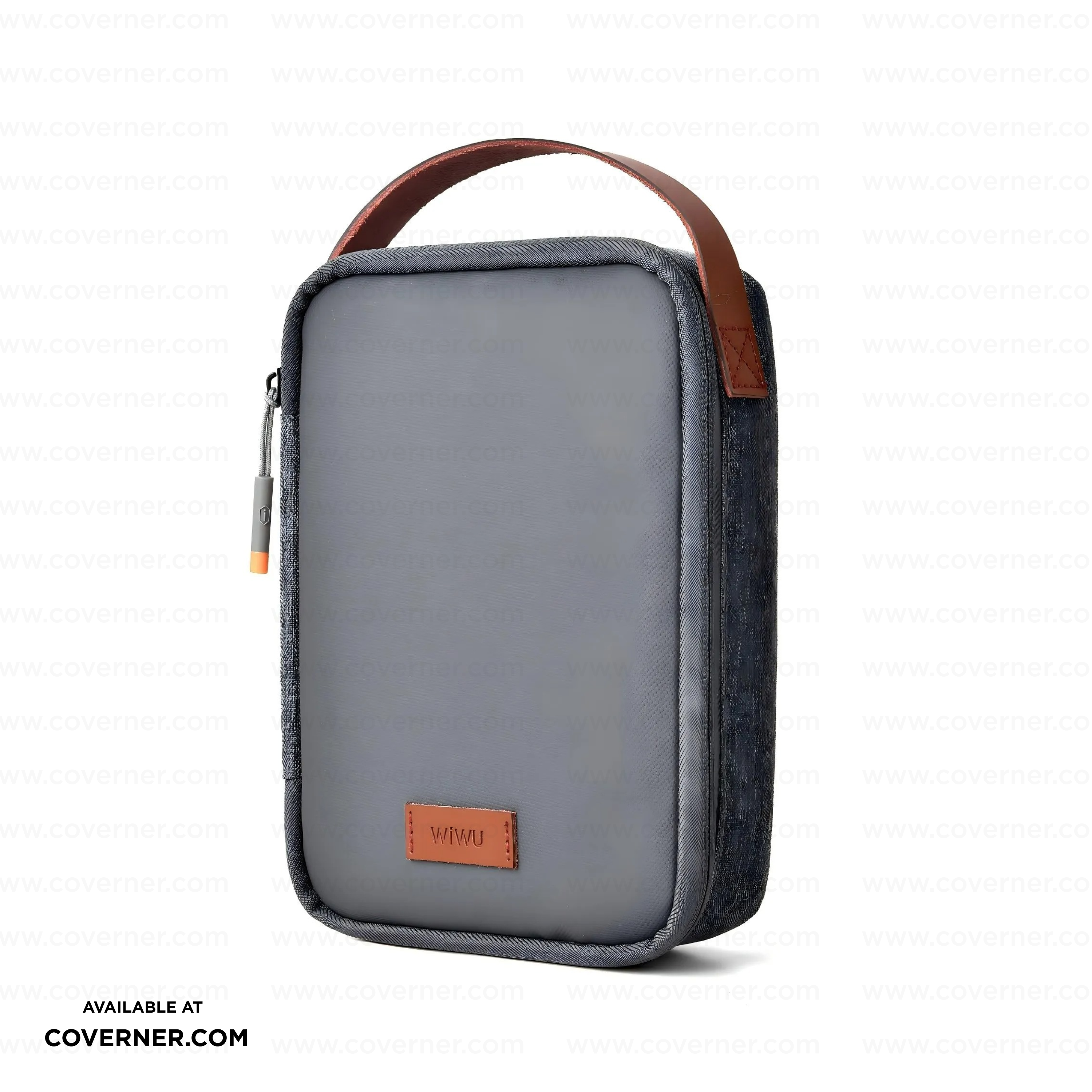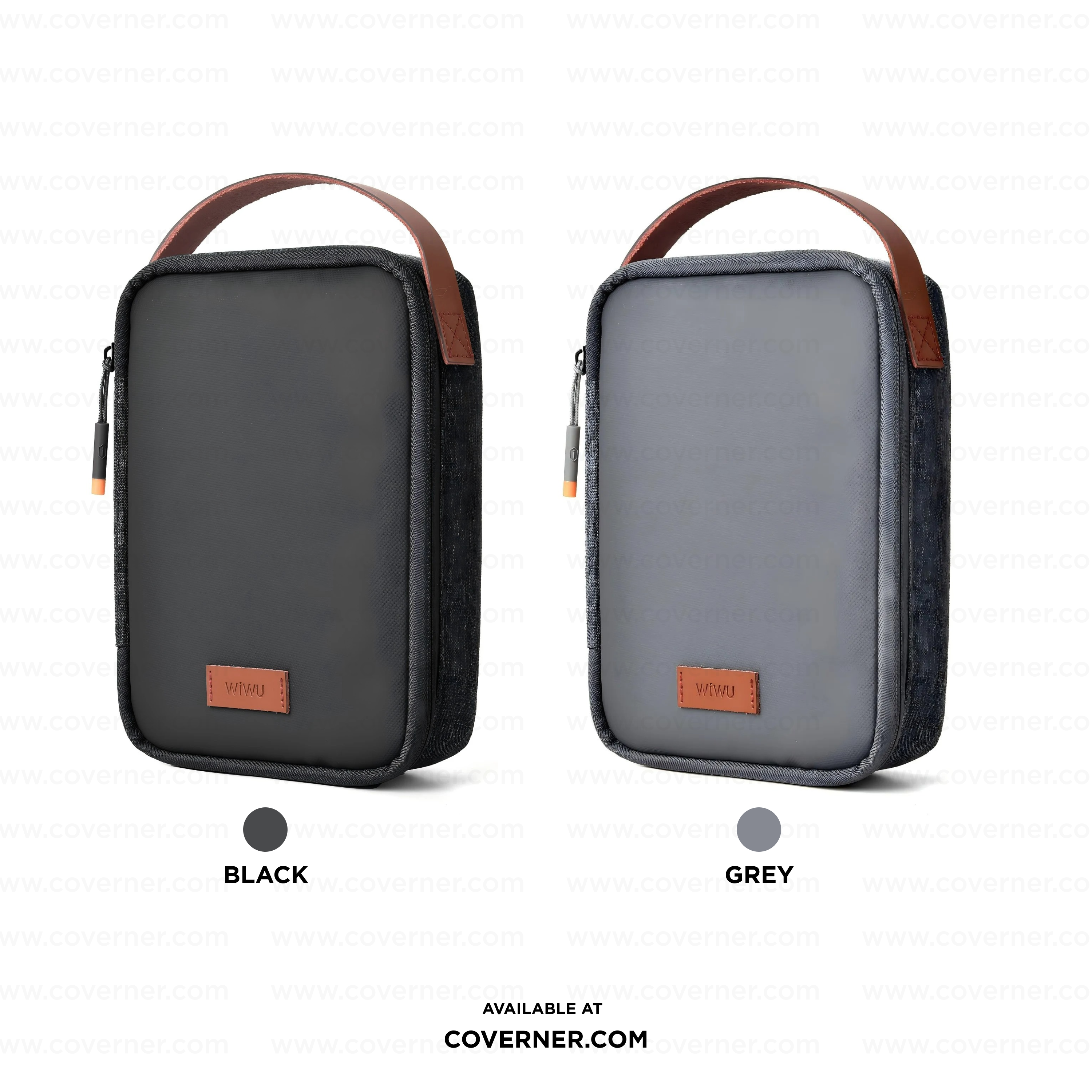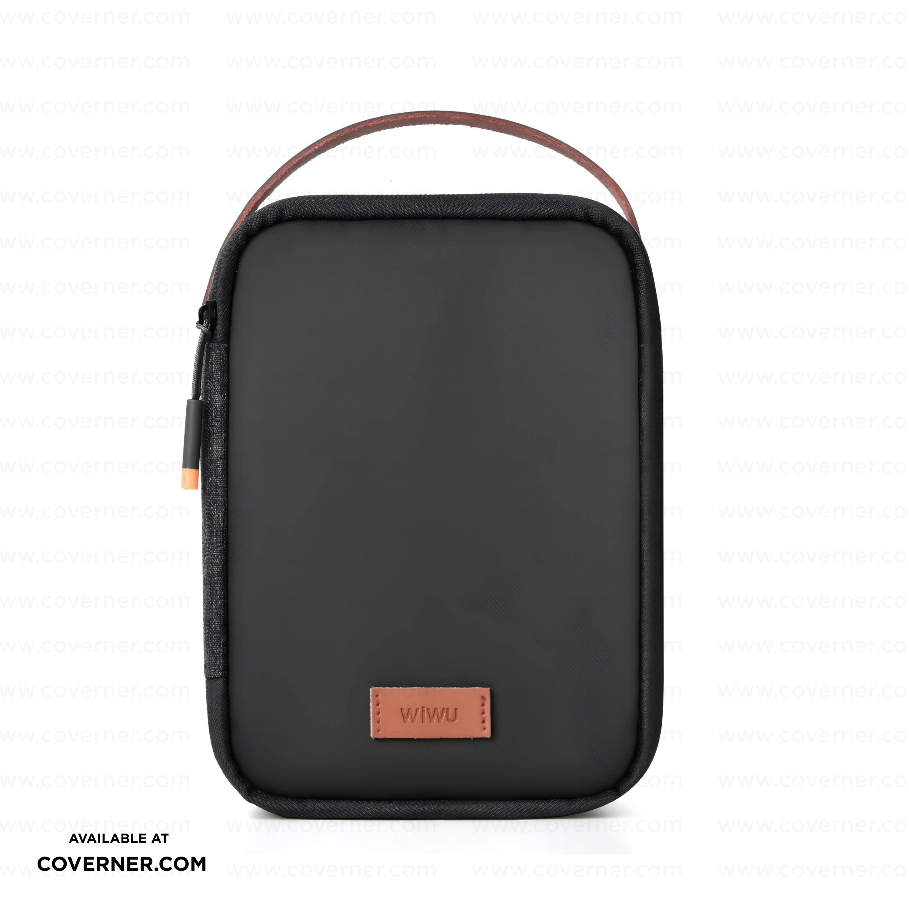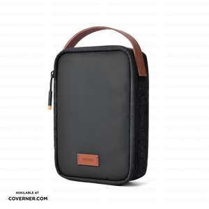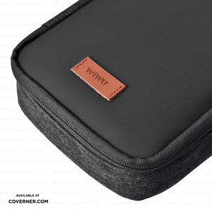 WiWU Minimalis Travel Tech Pouch – Splash-Proof Organizer with Leather Strap (Black/Gray) | Coverner India