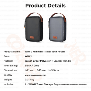 Package Includes: 1 x WiWU Travel Storage Bag (Accessories shown not included)